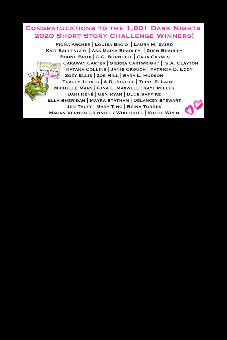It is a huge honor to be among the list of the amazing authors who also won. All of our stories will be included in an anthology that will be free on all retailers in December. I will of course send you links when it appears, but you can also subscribe to the 1001 Dark Nights newsletter to make sure you get notified about the anthology, all of their upcoming releases, and receive a bunch of great freebies.
